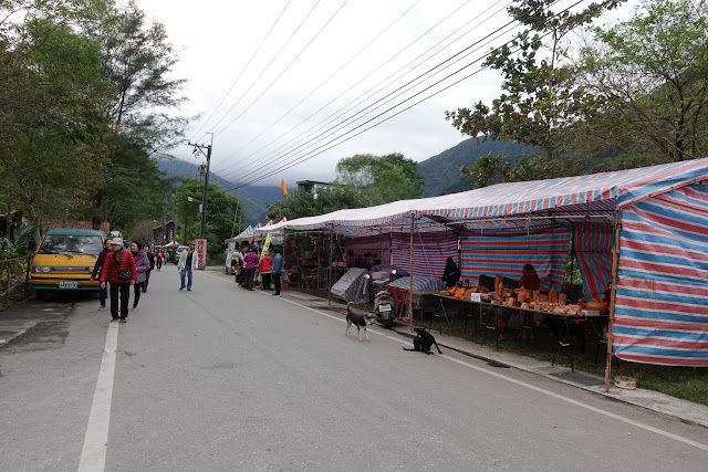 林田山外面有一片停車場,也會經過一小區市集