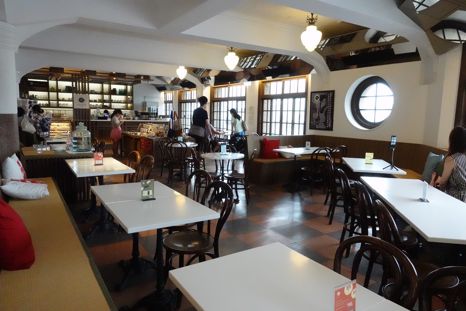 運氣很好,這時候空位很多,點了二碗豆花和麻吉準備休息一下
